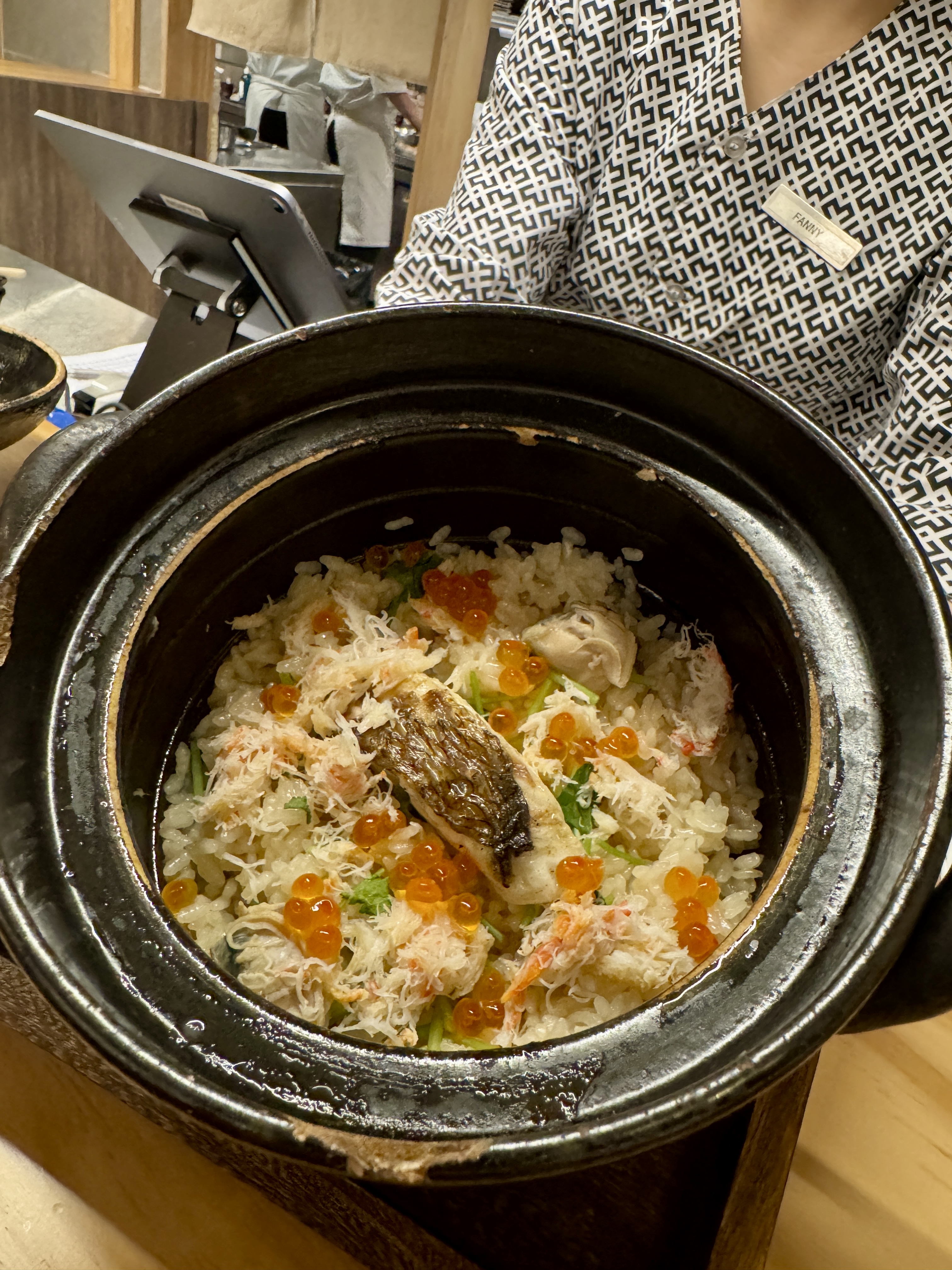 使用佐賀米搭配特製高湯,即叫即煮,米飯充分吸收海鮮精華,層次豐富,米香四溢,每粒米都富有彈性,吃完令人十分滿足。