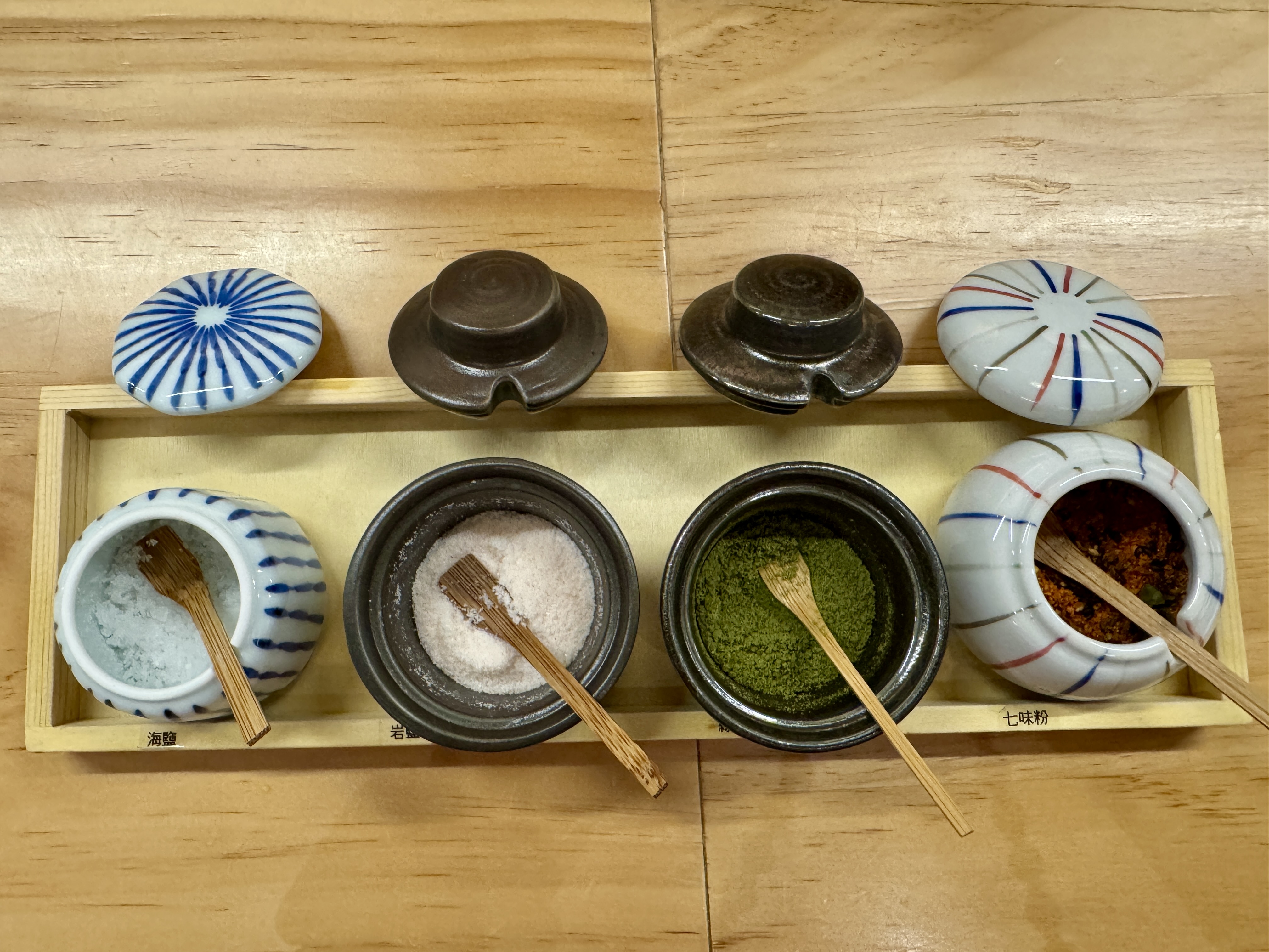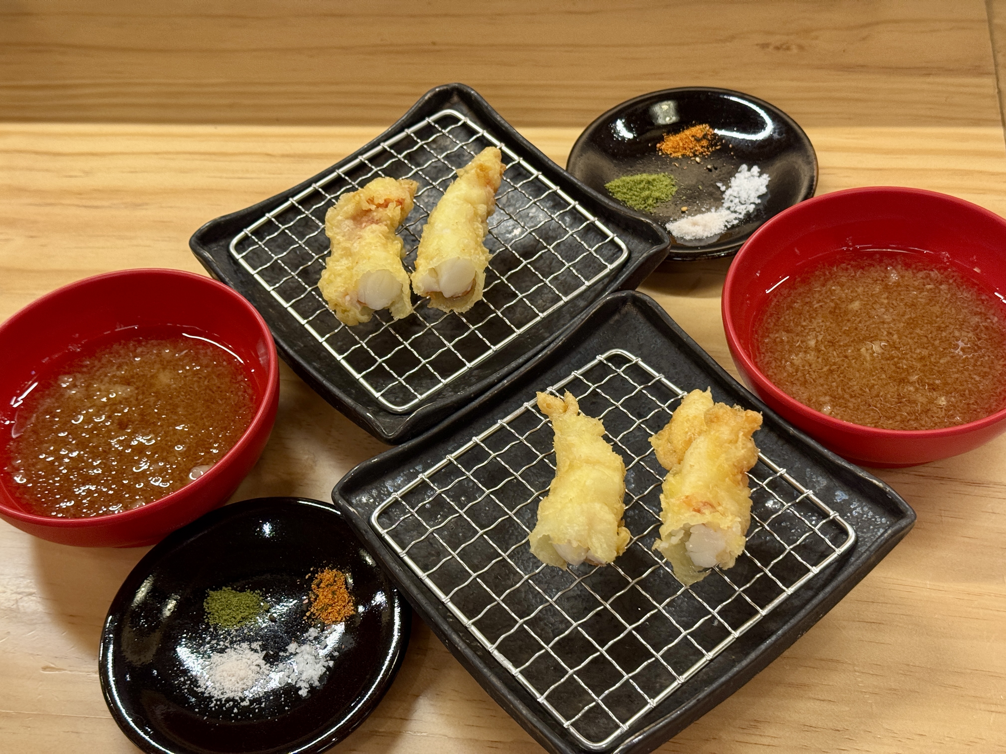 這是今次用餐的最大亮點,每款均即炸即食,炸衣薄透酥脆,香而不膩,完美鎖住食材的鮮味。在店員的提示下,蔬菜類可配岩鹽突出清新原味,海鮮則以抹茶鹽提鮮:
