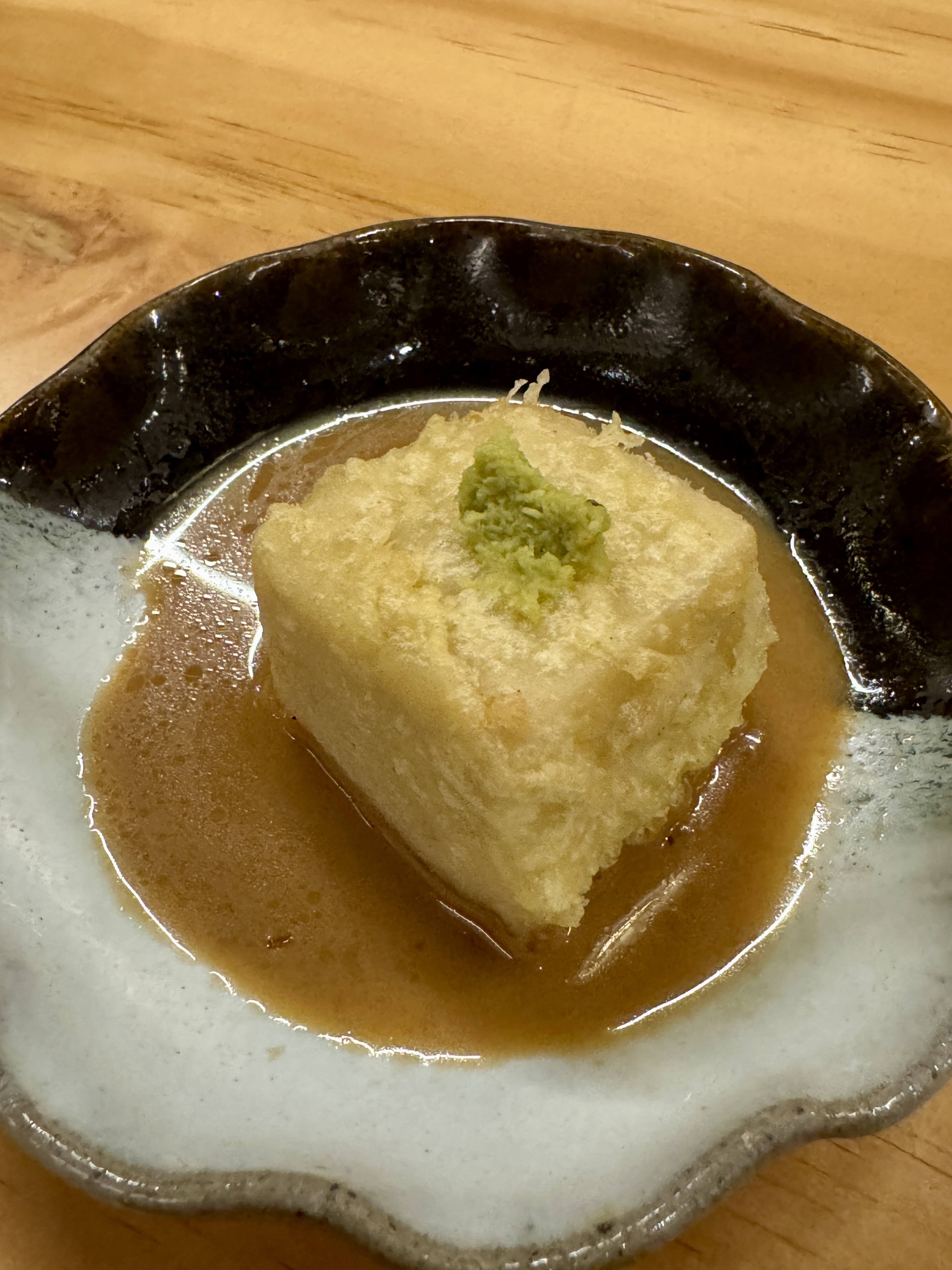 自家製胡麻豆腐:以薯粉和芝麻製成,滑順到極致,入口帶淡淡甜味,完全不同於平常豆腐的感覺。