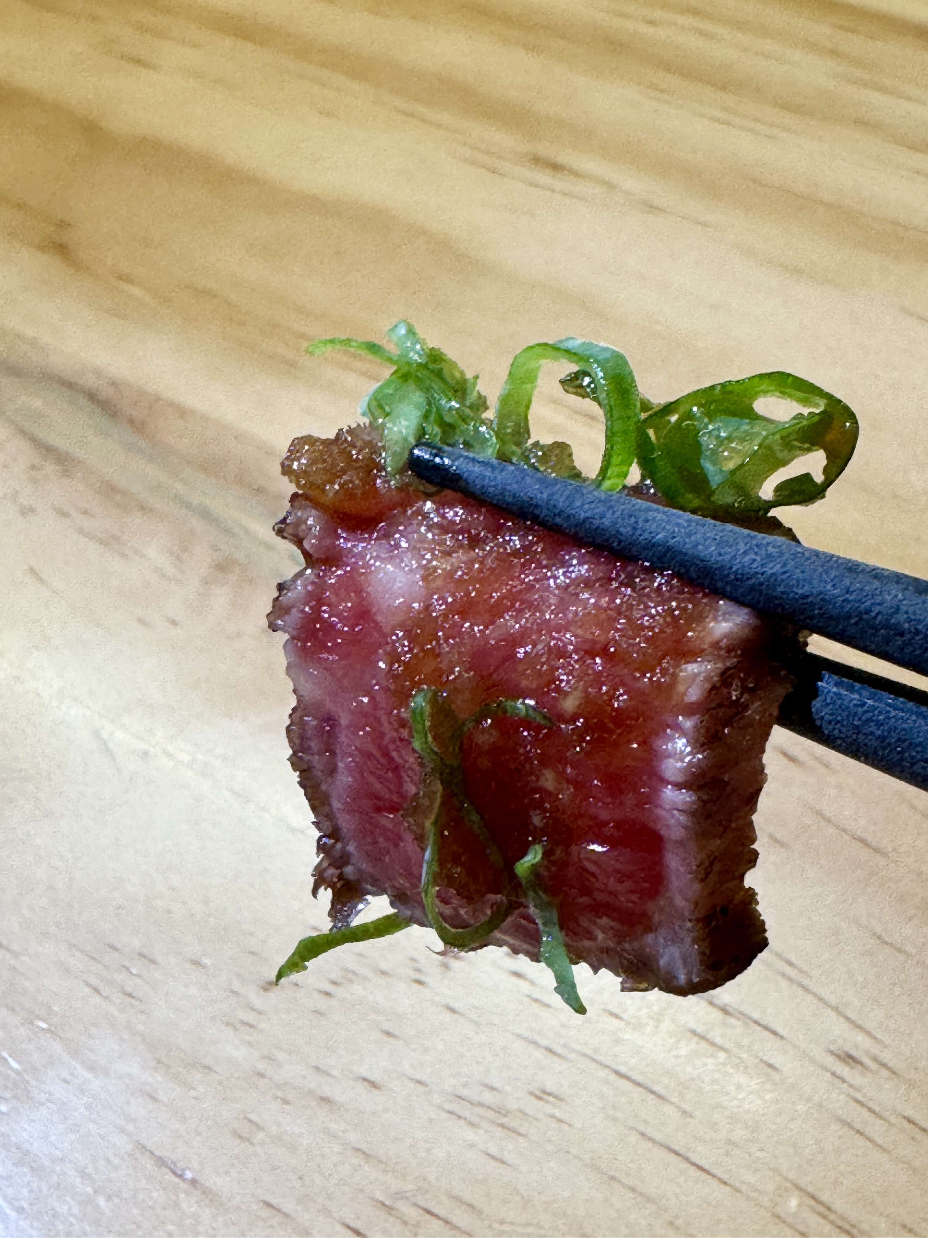 油花細密如霜,入口即化,牛肉鮮味在舌尖緩緩散開,肉質極其軟嫩,完全無需多餘調味,已是高級享受。